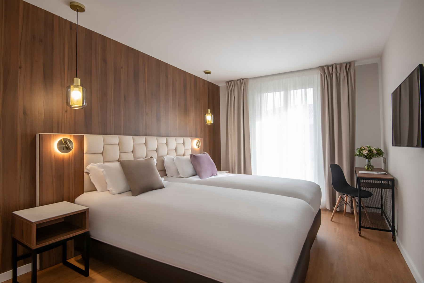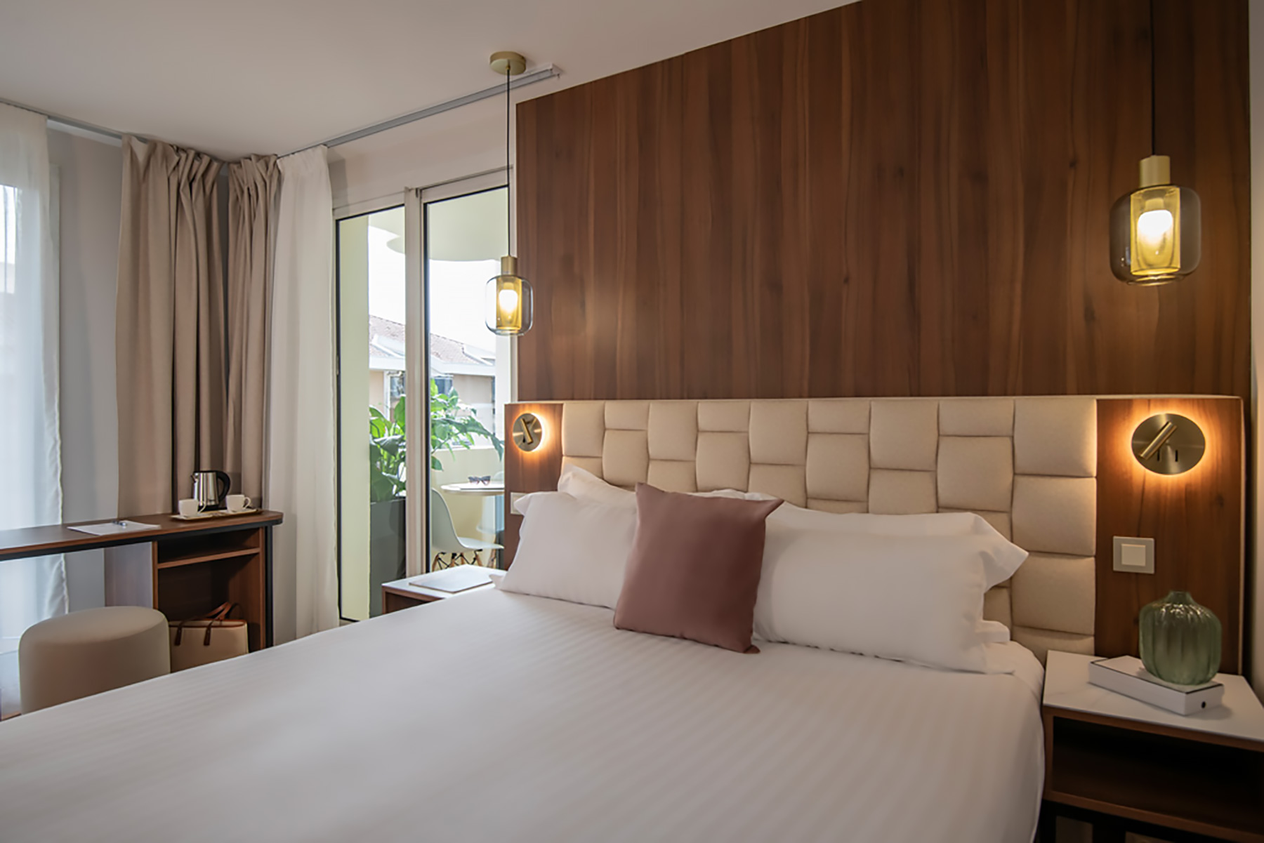 Experience the elegant, relaxing atmosphere of the rooms at Hotel Amarante. Enjoy views of the city of Cannes or the pool while staying in rooms that harmoniously combine style and functionality.